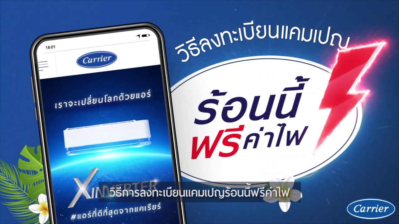 Carrier ร อนน ฟร ค าไฟ ว ธ ลงทะเบ ยน Youtube