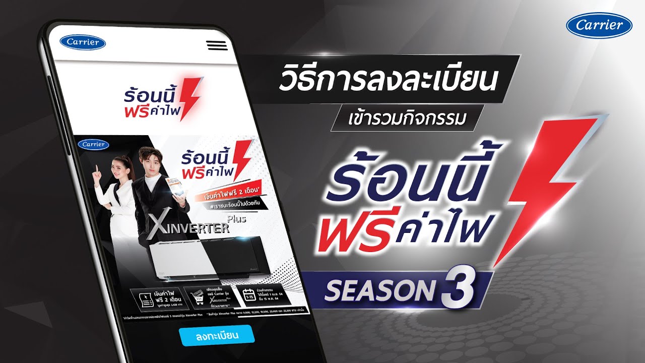 ว ธ และข นตอนการลงทะเบ ยน ร อนน ฟร ค าไฟ ซ ซ น3 ก บแอร Carrier ร น Xinverter Plus ป 2021 Youtube